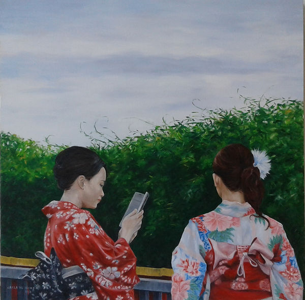 Duas garotas japonesas. Óleo sobre tela, 50 x 40 cm, 2019.